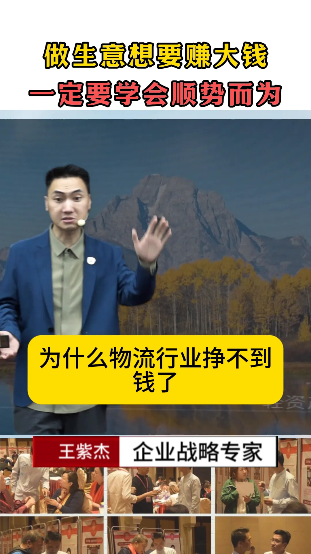 做生意想要赚大钱一定要学会顺势而为。 王紫杰,企业战略专家。 没有人靠自己努力可以成功的,都是靠时代趋势、时代红利成功的。很多老板每天守着自己的传统的行业、传统的地域,不想一想为什…